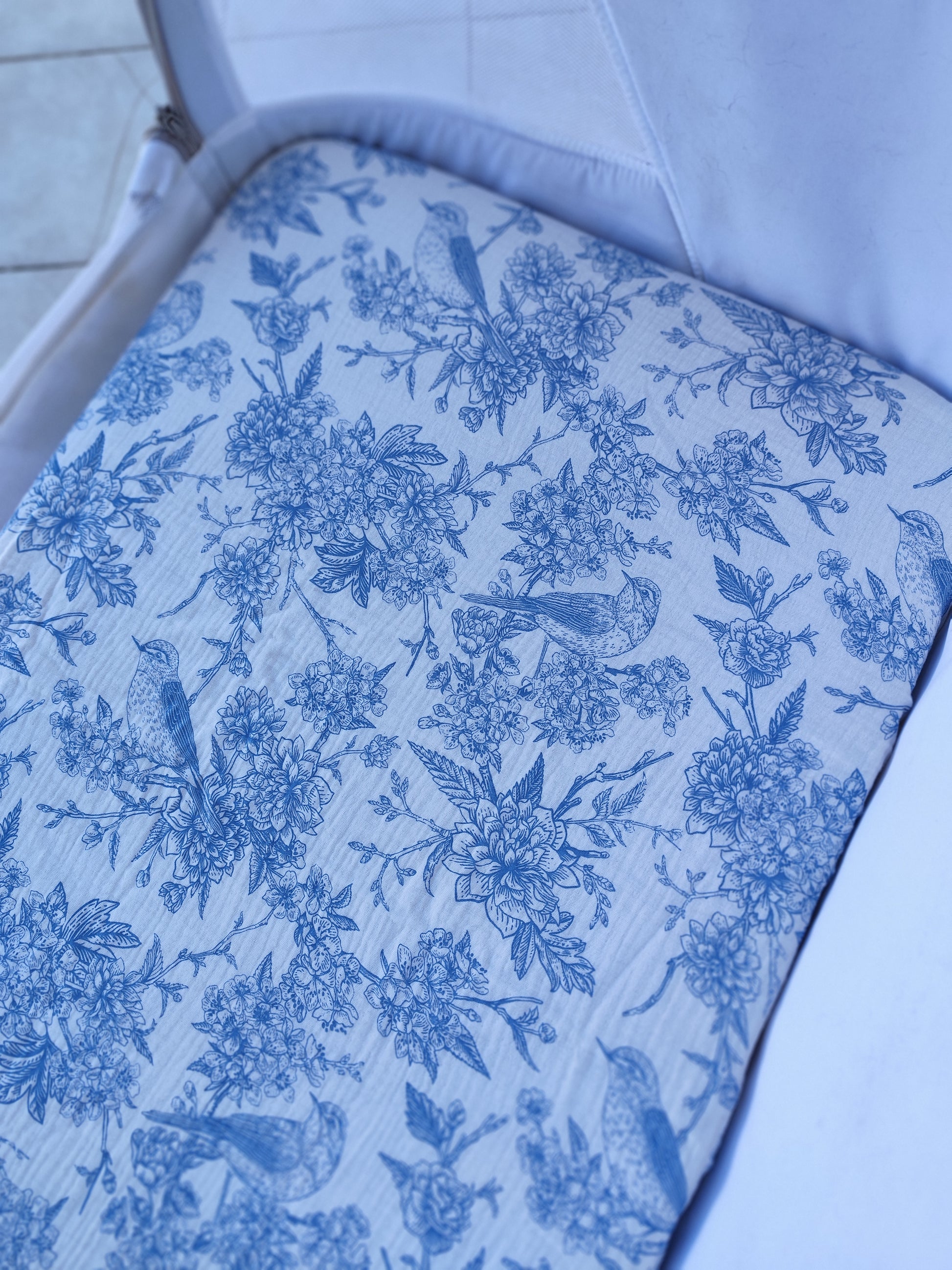 Sábana elástica (sábana de cobertura) hecha a mano para el capazo o la cuna de tu bebé.
