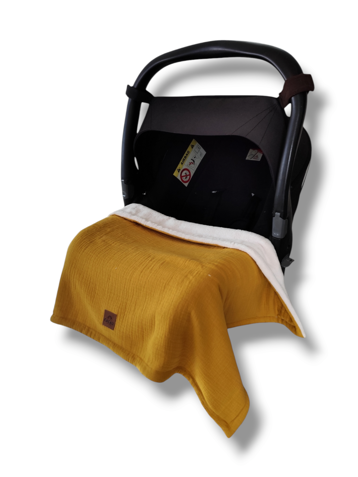 Manta de Musselina e Pêlo, delicadamente feita à mão.