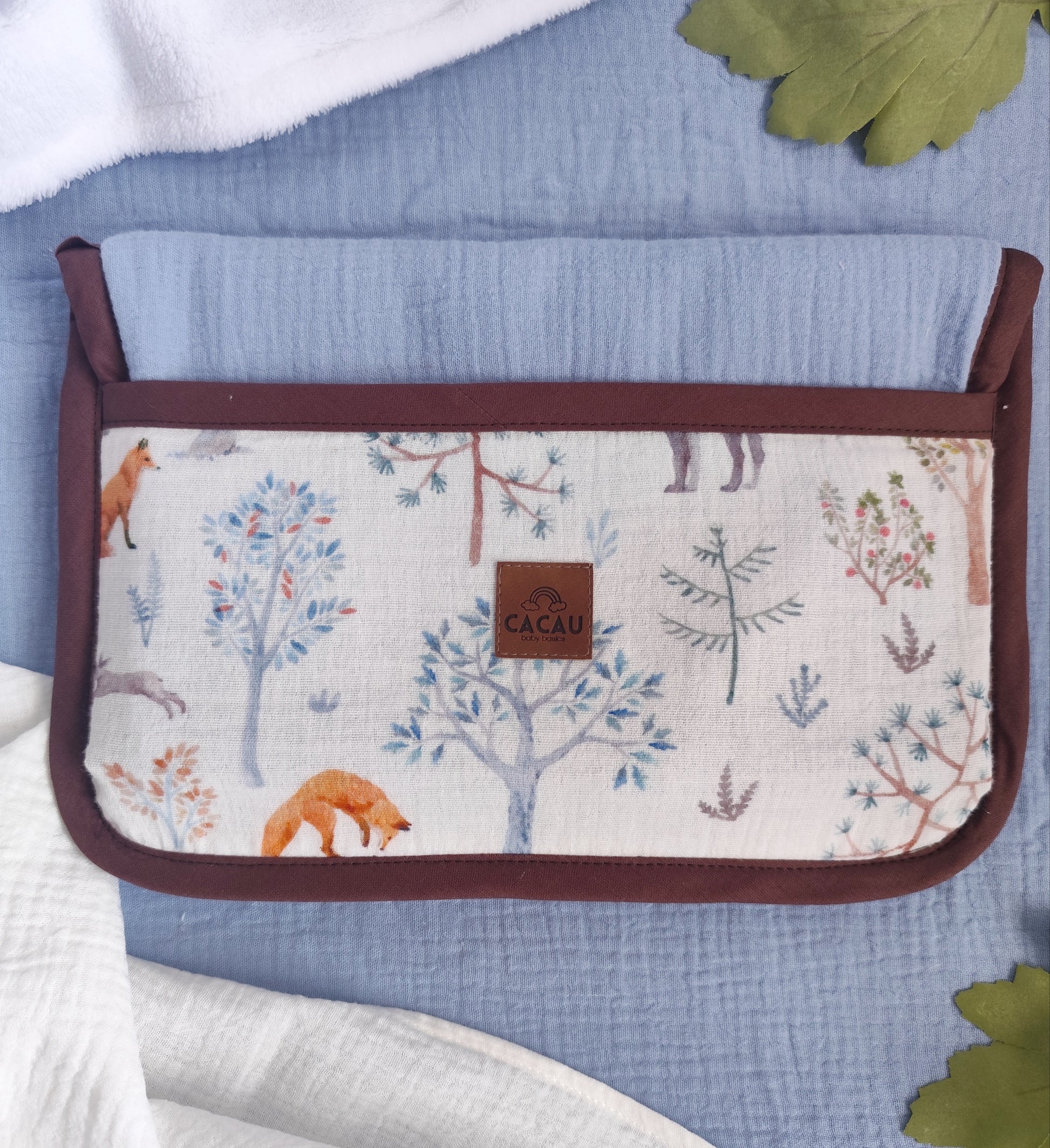 Feito à mão em Musselina e Turco, este muda fraldas portátil tem enchimento fofo para garantir conforto em qualquer superfície.
